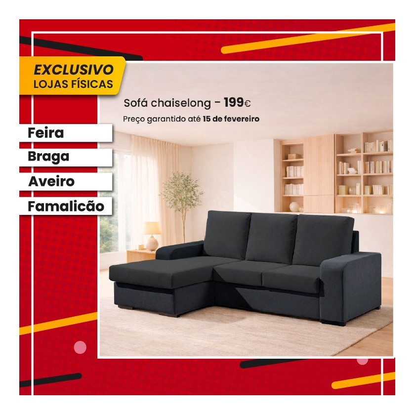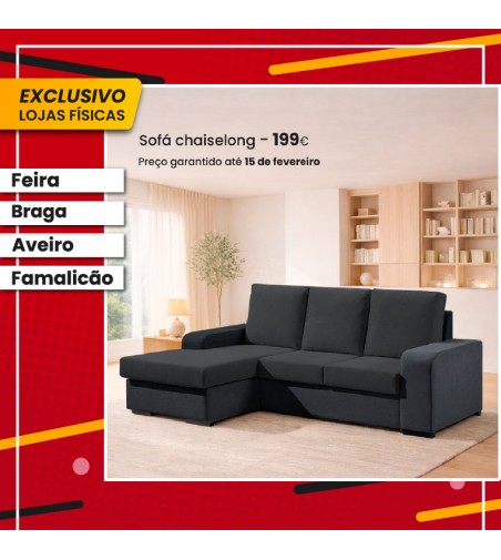 Sofa Chaise Redondela II Estrutura e Almofadas Celia 20 Preto F105 V2